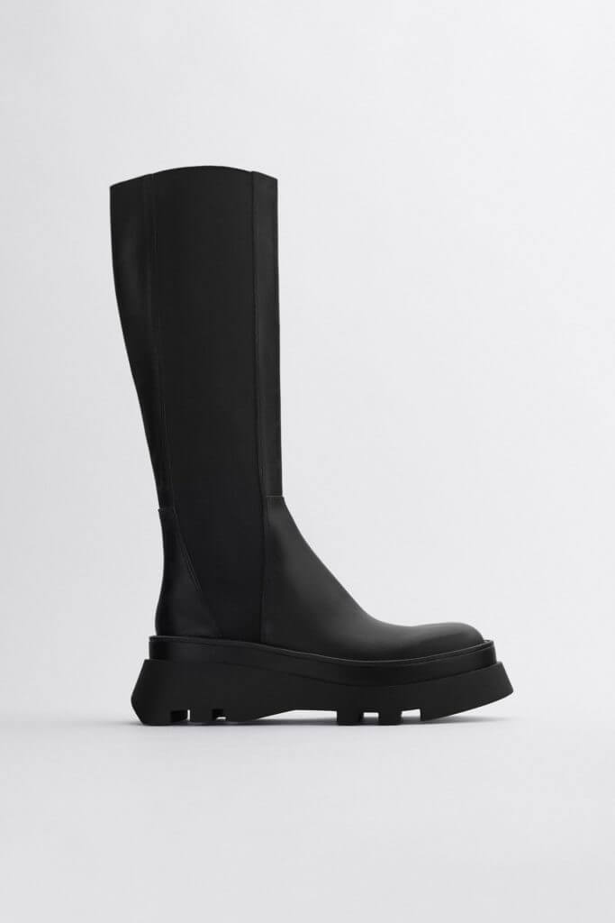 - Bottes plates en cuir avec semelle track Zara (49,99€ //