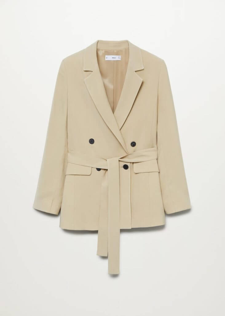 Si la tendance crème est présente dans votre dressing, alors cette veste de costume ceinturée beige à 29,99€ (69,99€) chez Mango est la parfaite acquisition.